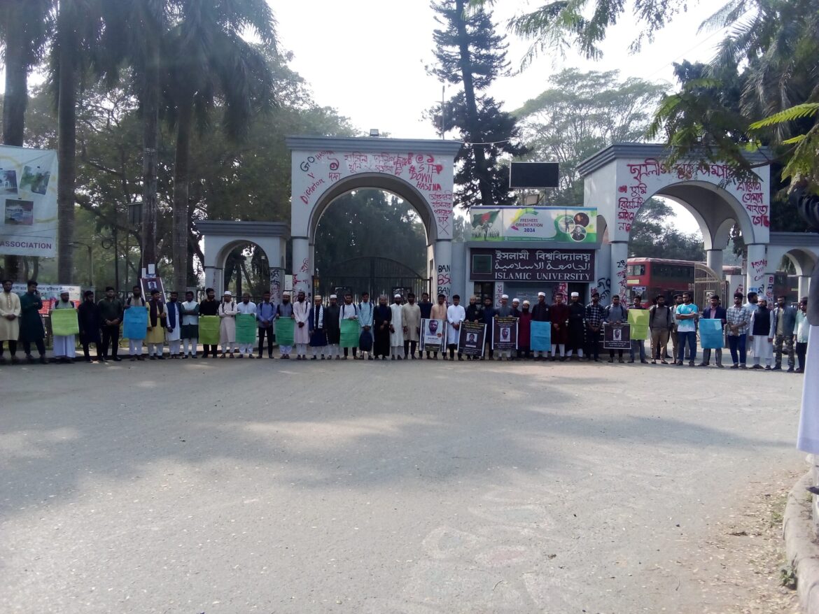 ২০১২ সালে গুম হওয়া কুষ্টিয়ার ইসলামী বিশ্ববিদ্যালয়ের (ইবি) দাওয়াহ অ্যান্ড ইসলামিক স্টাডিজ বিভাগের শিক্ষার্থী ওয়ালিউল্লাহ এবং আল ফিকহ অ্যান্ড লিগ্যাল স্টাডিজ বিভাগের আল মুকাদ্দাসের সন্ধানের দাবিতে মানববন্ধন করেছেন দুই বিভাগের শিক্ষার্থীরা।