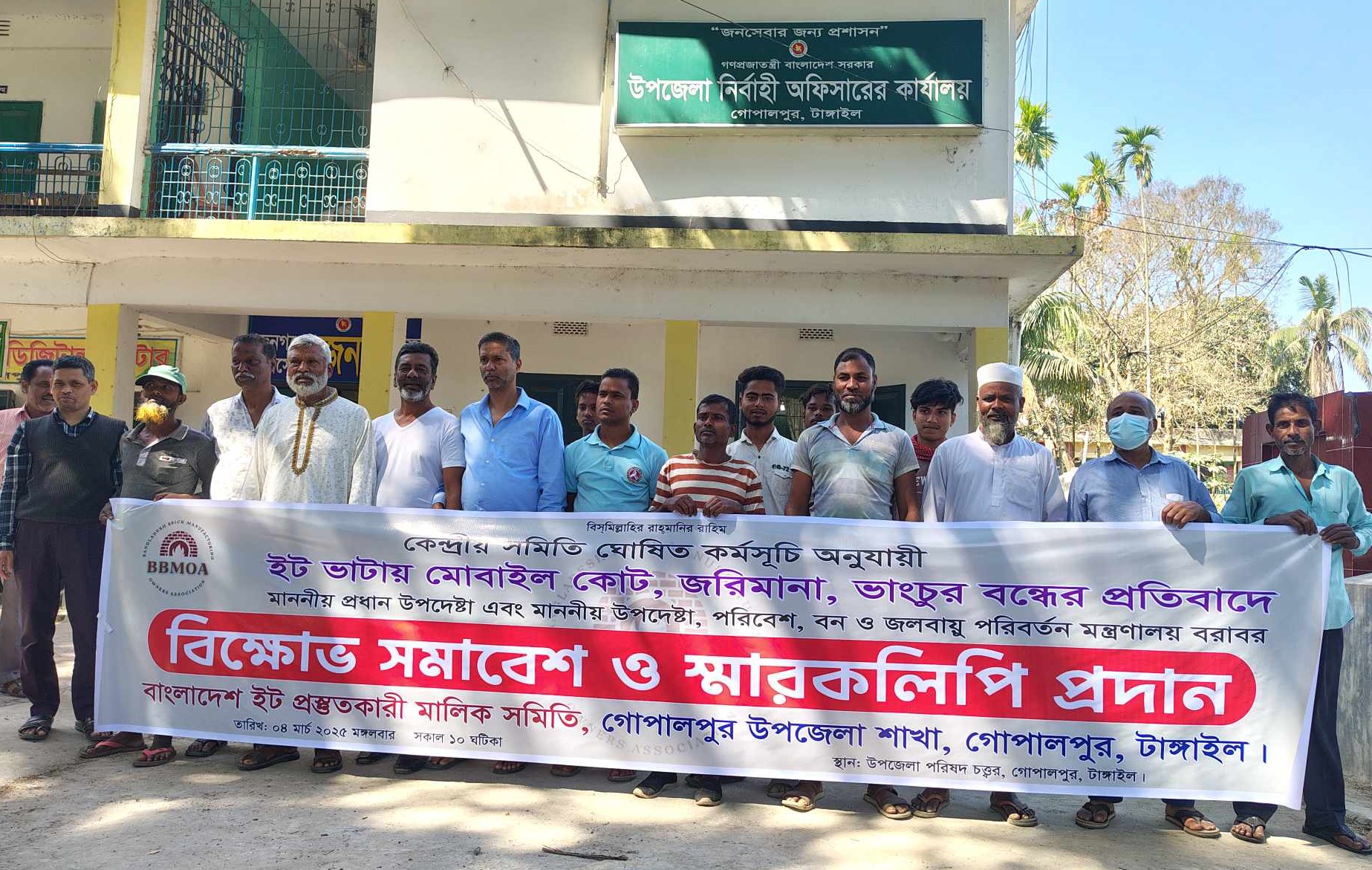 Home » গোপালপুরে ইটভাটা মালিকদের মানববন্ধন ও স্মারকলিপি প্রদান