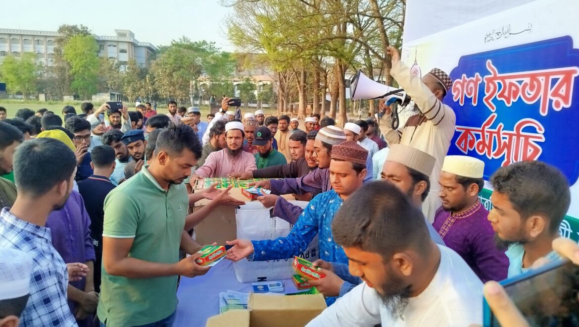 বাংলাদেশ ইসলামী ছাত্রশিবির, ইসলামী বিশ্ববিদ্যালয় (ইবি) শাখা কর্তৃক শিক্ষার্থীদের জন্য ‘গণ ইফতার কর্মসূচি’ অনুষ্ঠিত হয়েছে। বৃহস্পতিবার (৬ মার্চ) বিকাল ৫টা থেকে বিশ্ববিদ্যালয়ের ২টি স্থানে ১৭০০ শিক্ষার্থীর অংশগ্রহণে এই ইফতার বিতরণের আয়োজন করা হয়।
