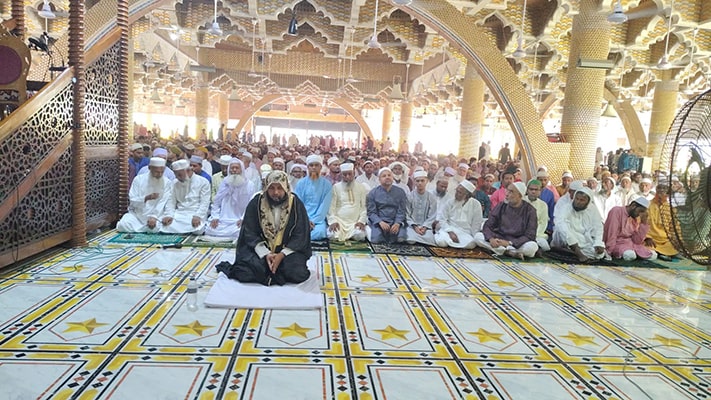 নামাজের খুৎবা প্রদান ও ইমামতি করেন, ২০১ গম্বুজ মসজিদের স্থায়ী খতিব মুফতি আবদুল্লাহ আল মামুন।
