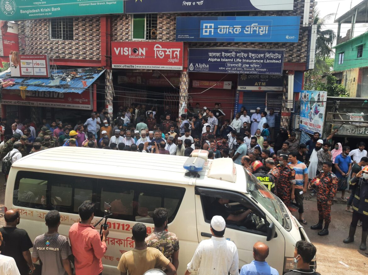 বাগেরহাট ফায়ার ব্রিগেড ও সিভিল ডিফেন্সের সিনিয়র স্টেশন অফিসার মো. শাহাবুদ্দিন প্রায় অভিন্ন ভাষায় বলেন, , ‘খবর পেয়ে বাগেরহাট, খুলনা, চিতলমারী, মোল্লাহাট এবং টুঙ্গিপাড়ার ৮টি ইউনিট আগুন নেভানোর কাজে অংশ নেয়। দীর্ঘ সময় চেষ্টা চালিয়ে, বেলা ১২টার দিকে তারা আগুন নিয়ন্ত্রণে আনে। ভবন থেকে মধ্য বয়সী এক নারীর মরদেহ উদ্ধার করা হয়।’