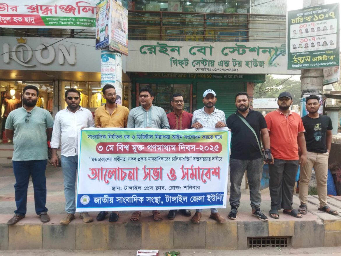 জাতীয় সাংবাদিক সংস্থা টাঙ্গাইল জেলা ইউনিটের উদ্যোগে বিশ্ব মুক্ত গণমাধ্যম দিবস উদযাপন করা হয়। ৩ মে শনিবার বিকেলে টাঙ্গাইল প্রেস ক্লাব প্রাঙ্গনে