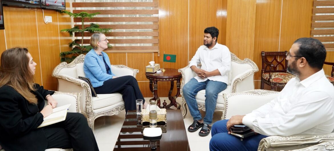 অন্তর্বর্তী সরকারের তথ্য ও সম্প্রচার উপদেষ্টা মোঃ মাহফুজ আলমের সঙ্গে সাক্ষাৎ করেছেন বাংলাদেশে নিযুক্ত ব্রিটিশ হাইকমিশনার সারাহ কুক। বৃহস্পতিবার (১৫ই মে) বিকালে তথ্য ও সম্প্রচার মন্ত্রণালয়ে এই সাক্ষাৎ অনুষ্ঠিত হয়।
