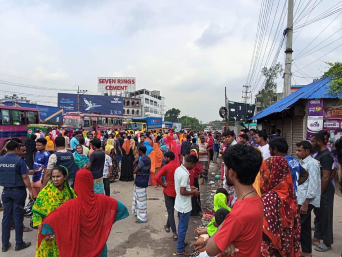 প্রত্যক্ষদর্শীরা জানান, সকাল ১০টার দিকে শ্রমিকেরা মহাসড়কের পাশে জড়ো হয়ে বকেয়া বেতন, সার্ভিস চার্জ ও ছুটির অর্থ পরিশোধের দাবিতে স্লোগান দিতে থাকেন। পরে তারা মহাসড়কে নামতে চাইলে পুলিশ দ্রুত ঘটনাস্থলে উপস্থিত হয়ে তাদের শান্ত করে এবং কারখানার প্রধান ফটকের সামনে আলোচনা শুরু করে।