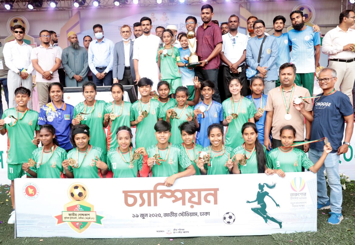 পর্দা নামলো জাতীয় গোল্ডকাপ ফুটবল টুর্নামেন্ট বালক ও বালিকা (অনূর্ধ্ব- ১৭) এর জাতীয় পর্যায়ের প্রতিযোগিতা। দুটি বিভাগের ফাইনাল ম্যাচ অনুষ্ঠিত হয় জাতীয় স্টেডিয়ামে।