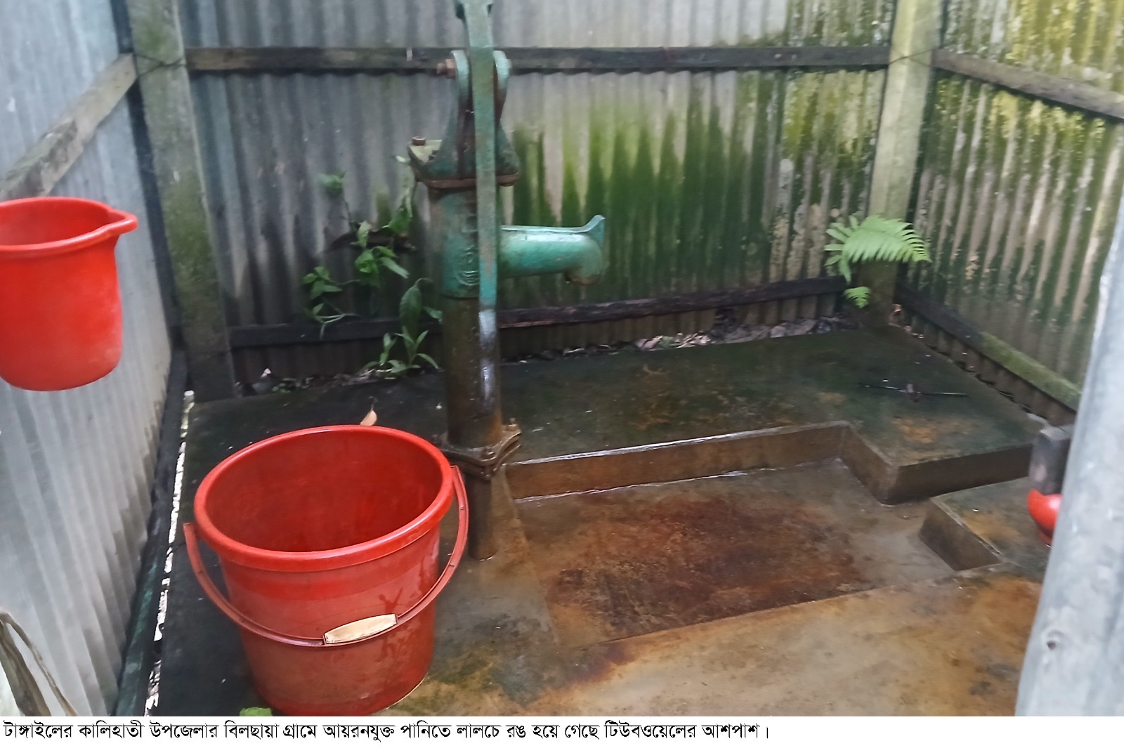 জানা যায়, টাঙ্গাইলের কালিহাতী উপজেলার সল্লা ইউনিয়নের বিলছায়া গ্রামে পাঁচ শতাধিক পরিবারের বসবাস। প্রায় ৩০ বছর যাবত ওই গ্রামের মানুষ আয়রনযুক্ত পানি অর্থাৎ এক প্রকার বিষপান করে যাচ্ছে। প্রতিটি পরিবারের অগভীর নলকূপের পানি পান করেন। নলকূপের নিচে লালচে রঙের স্তর জমা হয়ে রয়েছে।