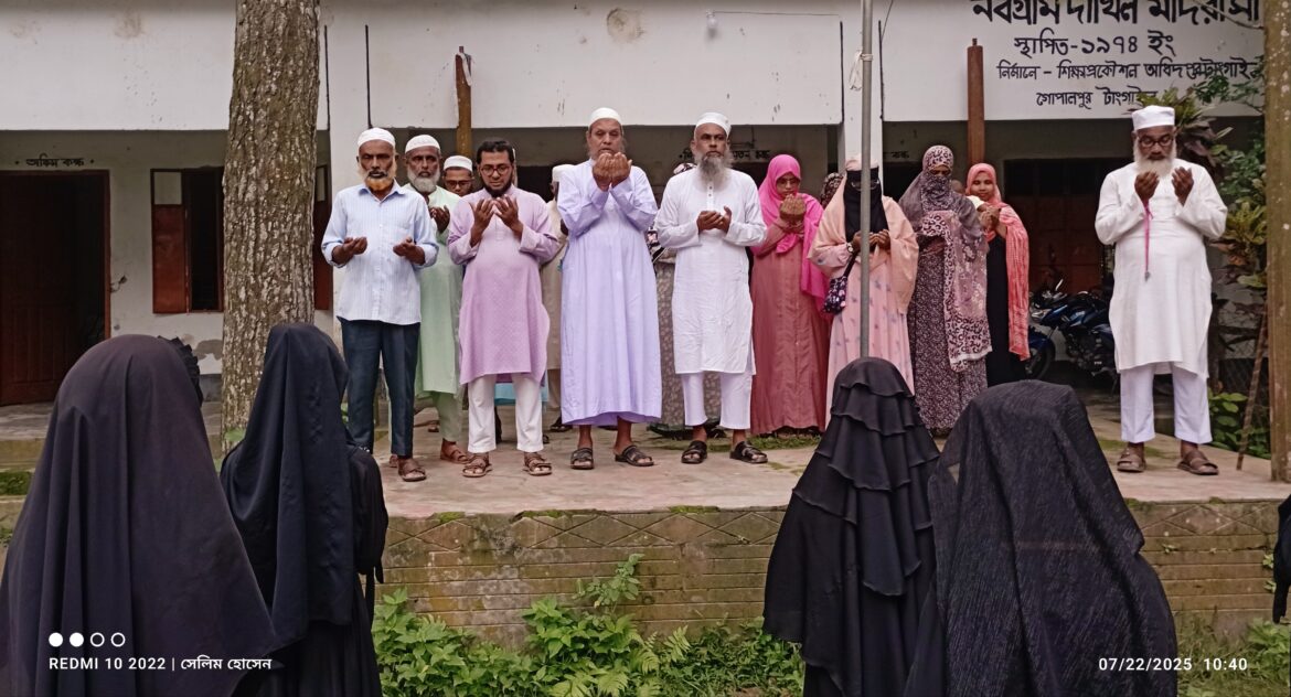 Home » রাজধানীর উত্তরায় বিমান বিধ্বস্তের ঘটনায়  গোপালপুরে শোক পালন