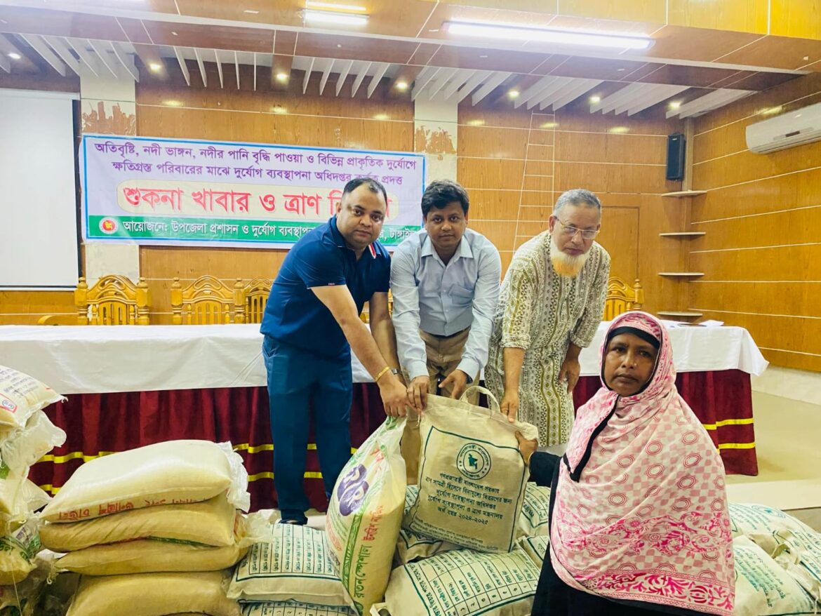 অতিবৃষ্টি, নদী ভাঙ্গন, নদীর পানি বৃদ্ধি পাওয়া ও বিভিন্ন প্রাকৃতিক দুর্যোগে ক্ষতিগ্রস্ত পরিবারের মধ্যে দুর্যোগ ব্যবস্থাপনা অধিদপ্তর কর্তৃক প্রদত্ত শুকনা খাবার ও ত্রাণ বিতরণ করা হয়েছে ।