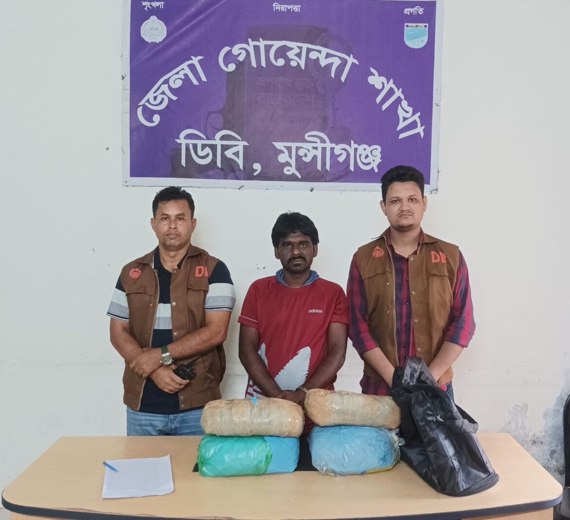 ২৭-০৭-২০২৫ দুপুর আনুমানিক ১৫.৩০ ঘটিকায় এসআই (নিরস্ত্র)/সৈয়দ হাসিব আহম্মেদ, জেলা গোয়েন্দা শাখা, মুন্সীগঞ্জ এর নেতৃত্বে সঙ্গীয় অফিসার-ফোর্সসহ ডিবি পুলিশের একটি টিম গোপন সংবাদের ভিত্তিতে মুন্সীগঞ্জ থানাধীন যোগিনীঘাট সাকিনাস্থ মানিক বেপারীর ঘাট নামক স্থানে জনৈক তারেক মাঝির “মুন্সীগঞ্জ ভাই ভাই সেলুন” এর সামনের পাঁকা রাস্তায় অভিযান পরিচালনা করে। মোঃ মিজানুর রহমান @ জাফর শেখ (৩৯), পিতা-মৃত আঃ আজিজ শেখ, মাতা-মৃত ফাতেমা বেগম, সাং-নাগেরহাট, থানা-লৌহজং, জেলা -মুন্সীগঞ্জ, বর্তমান ঠিকানা : সাং-নূরেরচালা (বোডঘাট, আক্তারের বাড়ির ভাড়াটিয়া ),থানা-ভাটারা, ডিএমপি, ঢাকা-কে গ্রেফতারপূর্বক দেহ তল্লাশিকালে তার নিজ উপস্থাপন মতে ০৮ (আট) কেজি গাঁজা উদ্ধারপূর্বক উপস্থিত সাক্ষীদের সম্মুখে জব্দতালিকা মূলে জব্দ করা হয়।