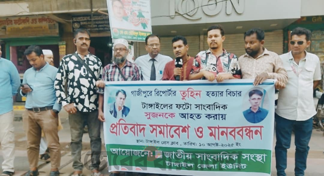 প্রতিবাদ সমাবেশ ও মানববন্ধন অনুষ্ঠিত হয়েছে। ১০ ই আগস্ট রবিবার টাঙ্গাইল প্রেসক্লাবের সামনে