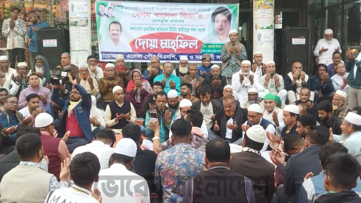 এলেঙ্গায় বিএনপি চেয়ারপারসন খালেদা জিয়ার রোগ মুক্তি ও সুস্থতা কামনায় দোয়া মাহফিল অনুষ্ঠিত