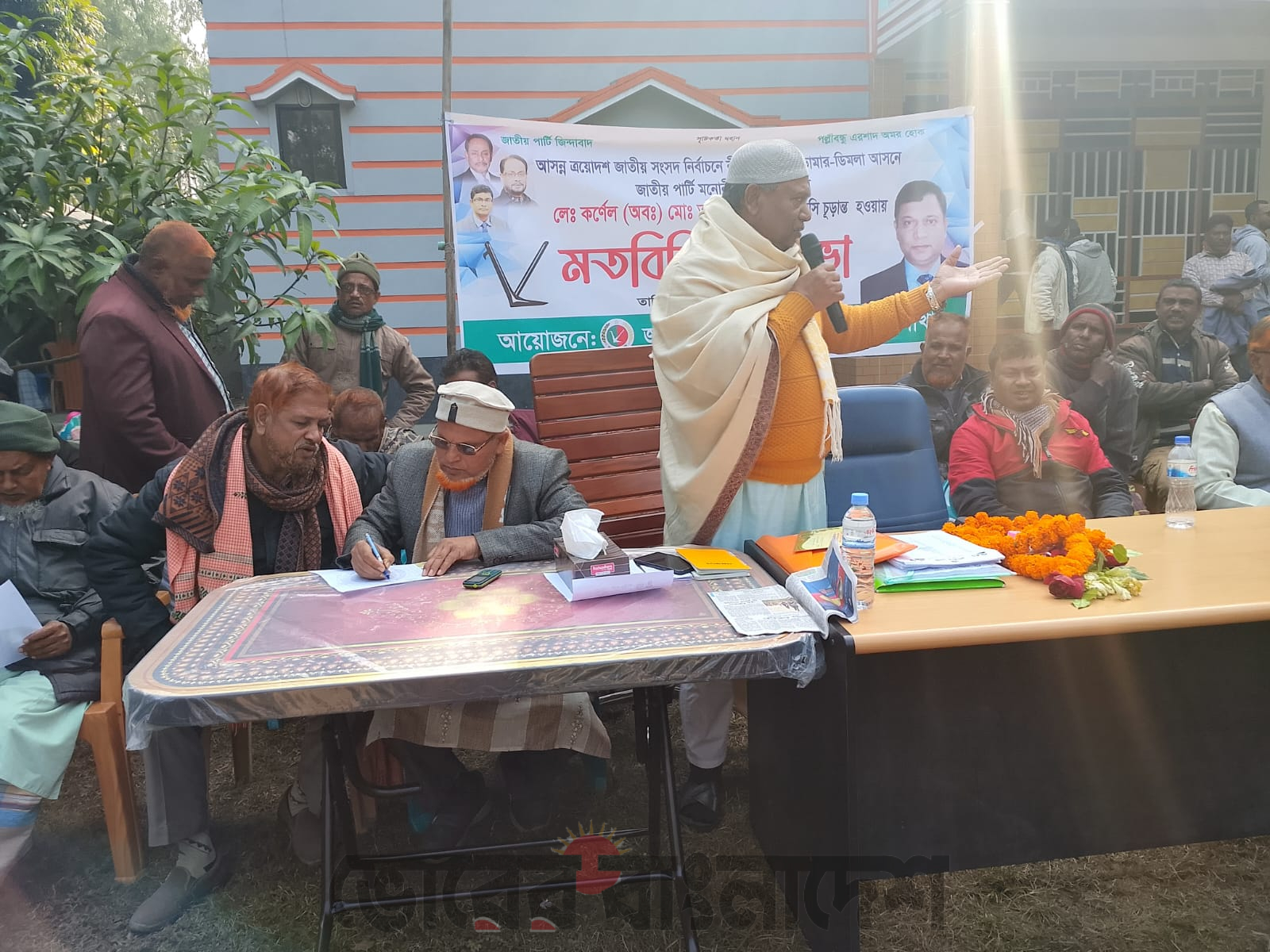 এরপর আজ সকাল ১১টায় নীলফামারীর ডিমলা উপজেলার নিজ বাসভবনে এক মতবিনিময় সভা অনুষ্ঠিত হয়। সভায় উপস্থিত ছিলেন জাতীয় পার্টির কেন্দ্রীয় ও স্থানীয় নেতৃবৃন্দসহ ১০টি ইউনিয়ন ও বিভিন্ন ওয়ার্ডের সভাপতি, সাধারণ সম্পাদক এবং অন্যান্য পদমর্যাদার নেতাকর্মীরা।