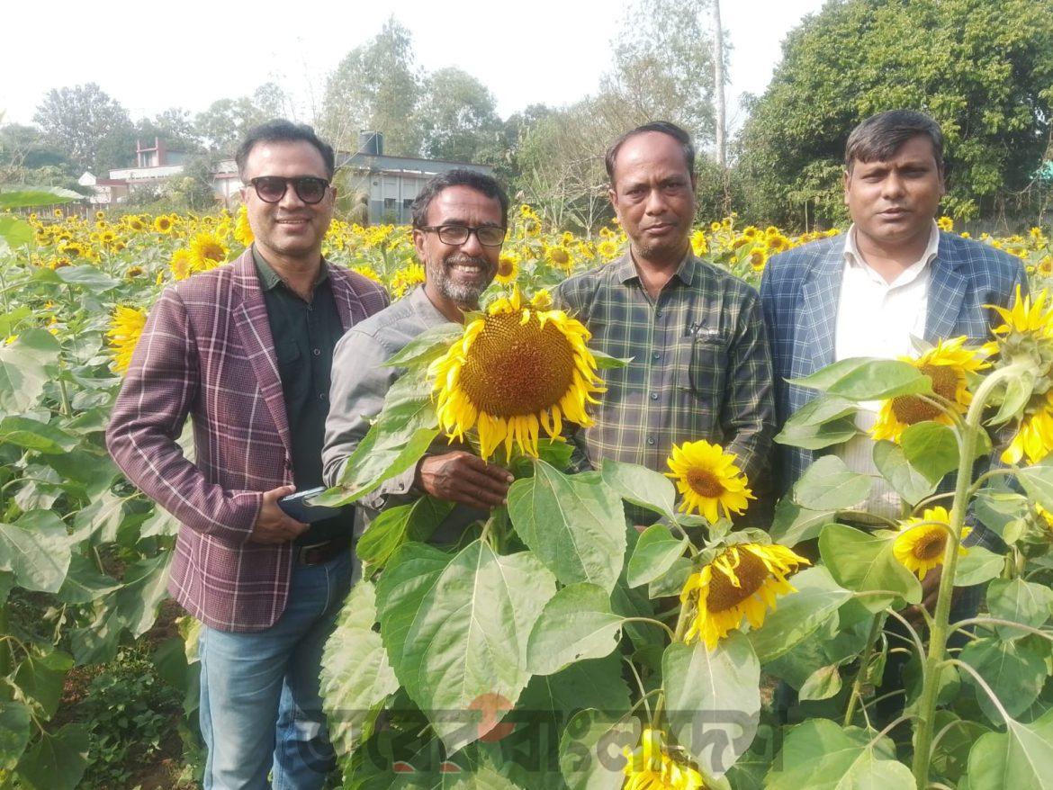 Home » টাঙ্গাইলের মধুপুরে লাল মাটির দেশে সূর্যমুখীর চাষে এক টুকরো হলুদ স্বর্গ