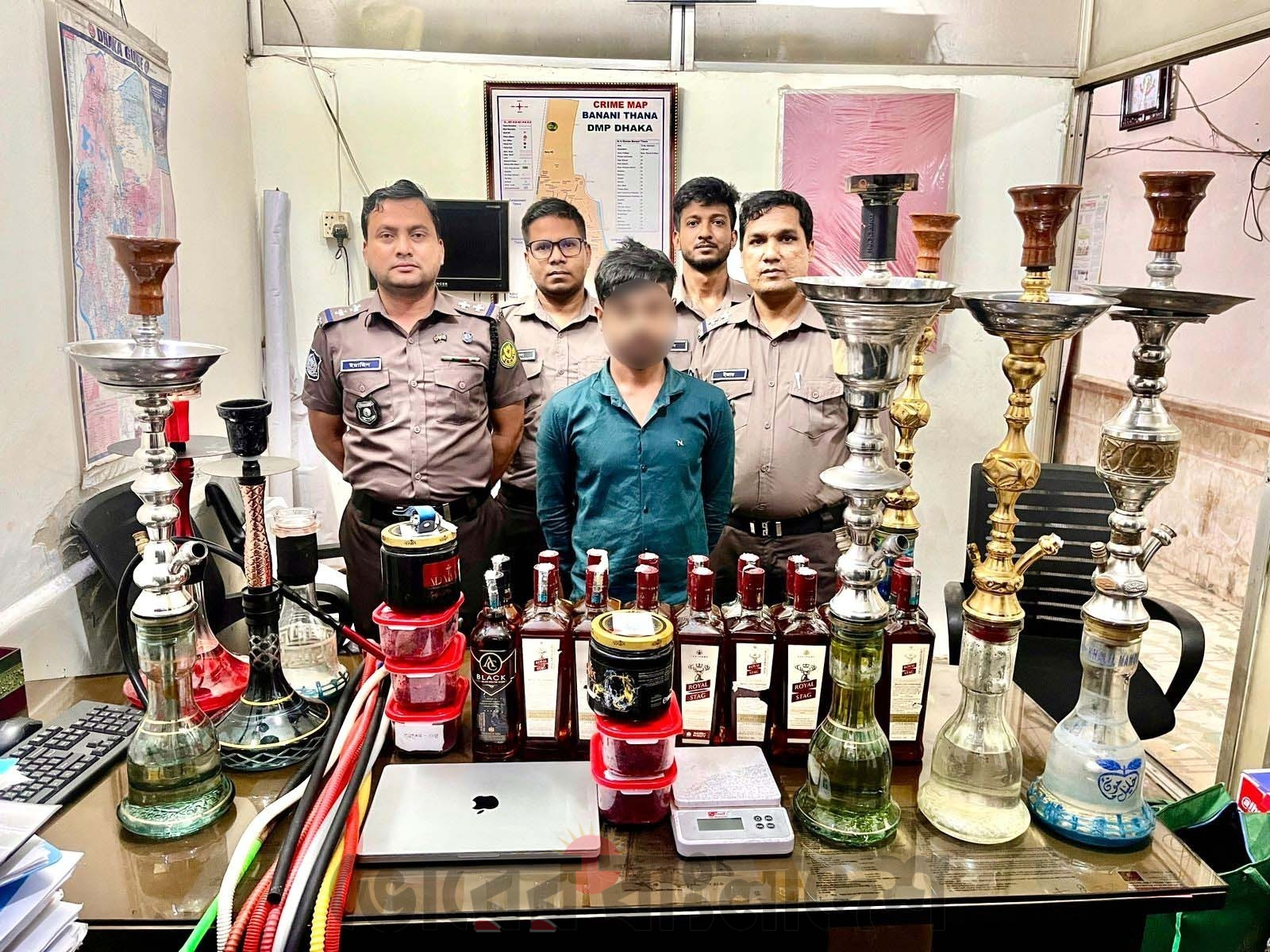 বনানী থানা পুলিশ জানায়, গোপন সংবাদের ভিত্তিতে বনানী ই-ব্লকের ১২ নং রোডের একটি বাসায় “Antalya” নামে পরিচালিত অবৈধ সীসা বারে অভিযান চালানো হয়। এ সময় তার হেফাজত থেকে ১৮ বোতল বিদেশি মদ, ৭টি প্লাস্টিকের বক্স অবৈধ সীসা, ১১টি প্রিমিয়াম সীসা স্ট্যান্ড, ১টি মোটরসাইকেল, ১টি ল্যাপটপ এবং ১টি চাবি উদ্ধার করা হয়।