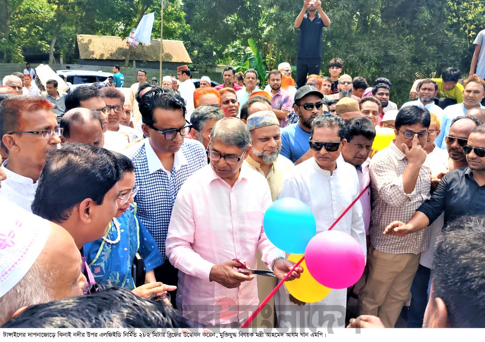 মুক্তিযুদ্ধ বিষয়ক মন্ত্রী অ্যাডভোকেট আহমেদ আযম খান এমপি বলেছেন, সরকার একেবারে শূন্য হাতে উন্নয়ন শুরু করেছে। সরকারের তহবিলে পর্যাপ্ত টাকা নেই। তারপরও আমরা উন্নয়ন কর্মকান্ড শুরু করেছি। অতিগুরুত্বপূর্ণ ভাতকুড়া থেকে নলুয়া পর্যন্ত ফোরলেন সড়কের বিষয়টি আমার নির্বাচনি প্রতিশ্রুতি। আমি এটা নিয়ে কাজ শুরু করে দিয়েছি। অচিরেই ভাতকুড়া থেকে নলুয়া পর্যন্ত ফোরলেন সড়কের কাজ শুরু হবে ইনশাল্লাহ। শনিবার(১৮ এপ্রিল) দুপুরে টাঙ্গাইলের বাসাইল উপজেলার দাপনাজোড়ে ঝিনাই(পুংলি) নদীর উপর এলজিইডি নির্মিত ২৮২ মিটার পিএসসি গার্ডার ব্রিজের উদ্বোধন শেষে সাংবাদিকদের বিভিন্ন প্রশ্নের জবাবে তিনি এসব কথা বলেন। উদ্বোধন শেষে মন্ত্রী দৃষ্টিনন্দন সেতুটি ঘুরে ঘুরে দেখেন এবং স্থানীয় গণমানুষের সঙ্গে কথা বলেন।